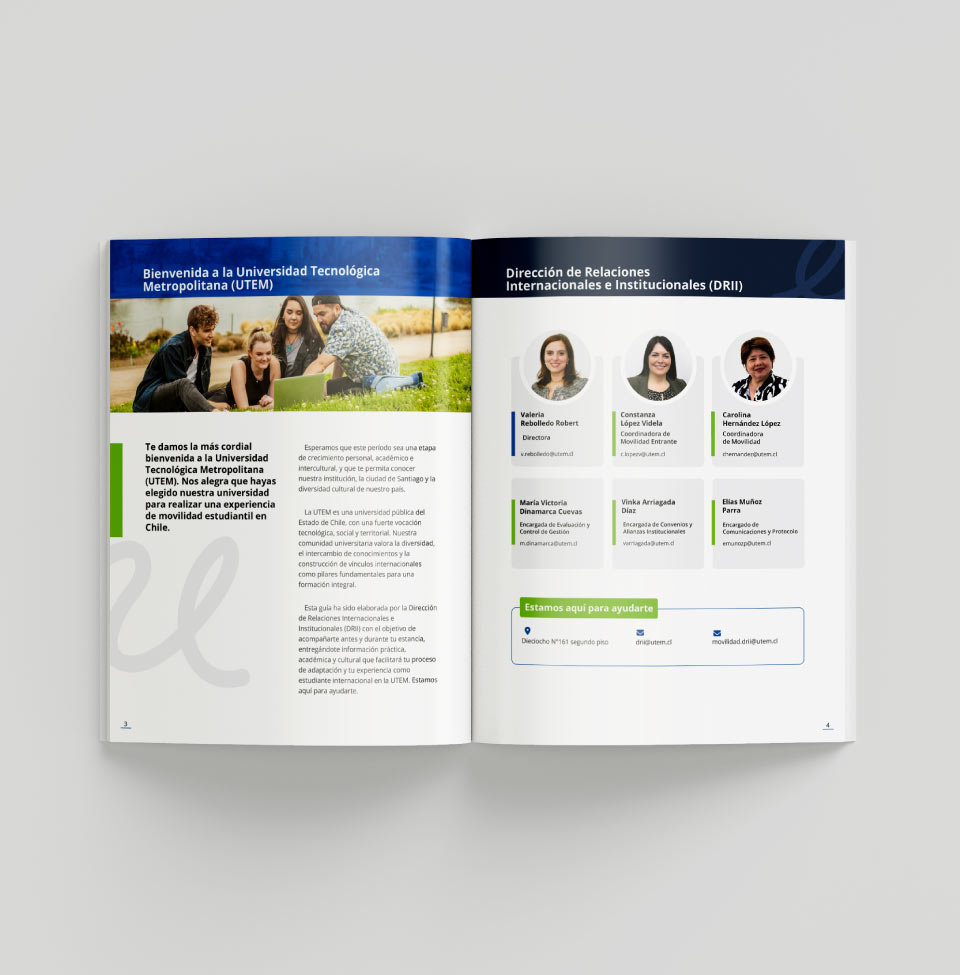 Esta guía fue desarrollada por la Dirección de Relaciones Internacionales e Institucionales (DRII) de la Universidad Tecnológica Metropolitana (UTEM) con el propósito de acompañar a estudiantes internacionales antes y durante su estancia en el país. El documento reúne información práctica, académica y cultural orientada a facilitar su proceso de adaptación y enriquecer su experiencia como estudiantes internacionales en la UTEM.