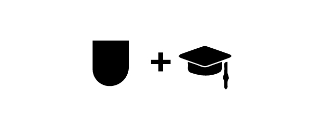 El birrete se integra como elemento central de significación, reforzando de manera directa los conceptos de educación, aprendizaje y formación, actuando como anclaje semántico del sistema visual.