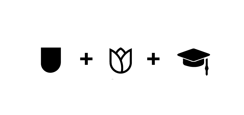 En este sentido, se toma como referencia la figura del escudo, tradicionalmente asociada a instituciones educativas y universitarias, reinterpretándola a partir de la morfología del escudo municipal, cuya silueta presenta una geometría suave y orgánica, cercana a la forma de una flor. Esta decisión permite mantener coherencia institucional, al mismo tiempo que humaniza y suaviza el carácter del símbolo.